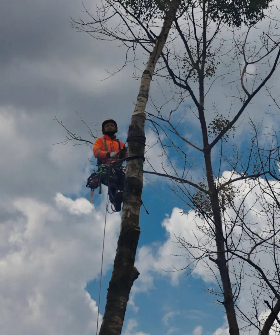 - wycinka drzew metodą alpinistyczną, czyli przy pomocy specjalistycznego sprzętu alpinistycznego do pracy na wysokości (np. przycinanie uszkodzonych gałęzi),